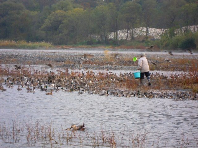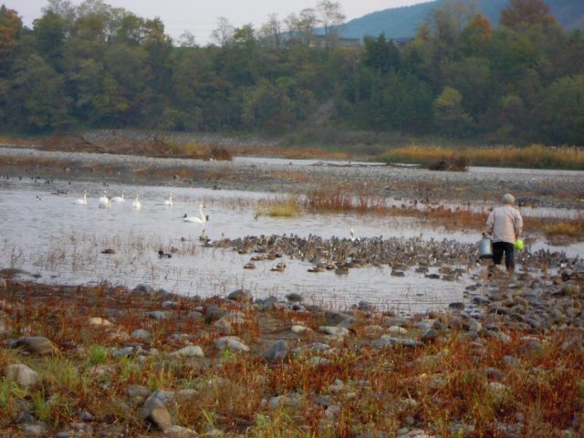 白鳥湖です。今朝行ってみたら餌をあげていました。