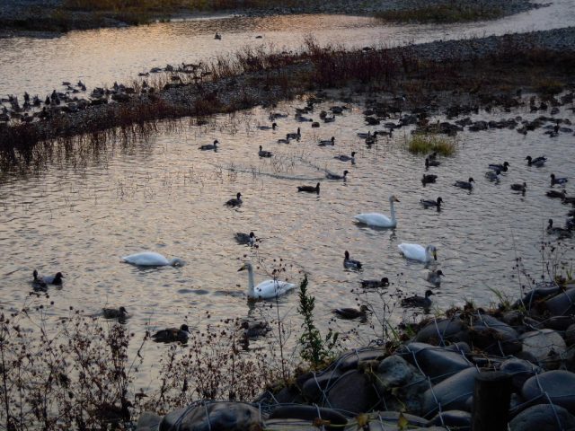 まだ白鳥の警戒心が強くてなかなか近くに来てくれないそうです。