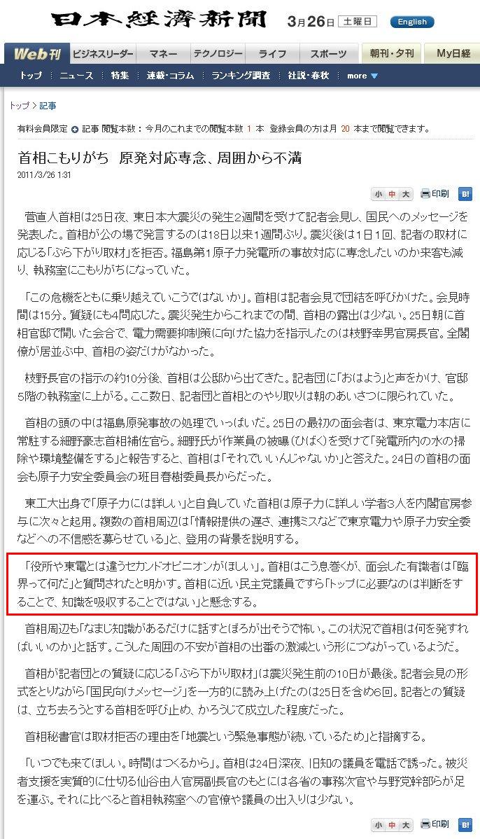 「臨界って何だ」(日本経済新聞)「最悪なリーダーの条件とは」2011-03-28