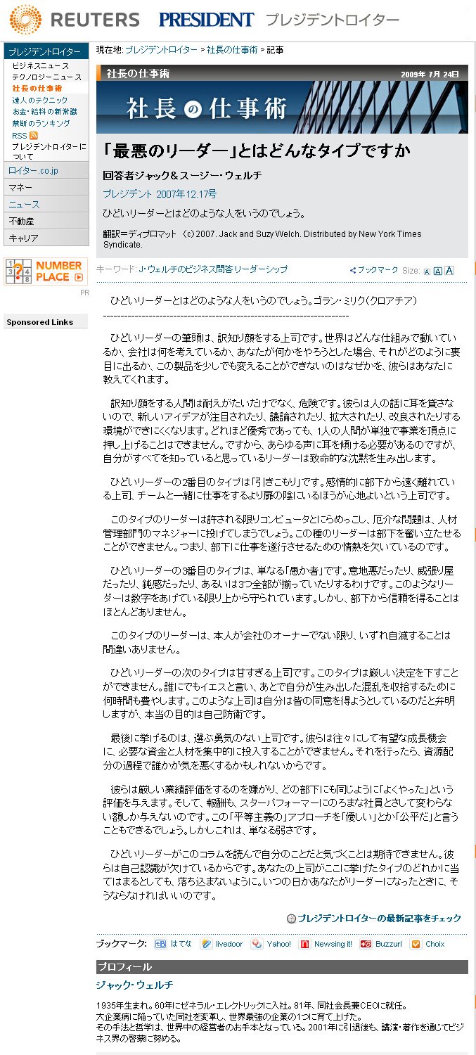 ロイターの「社長の仕事術」にあった