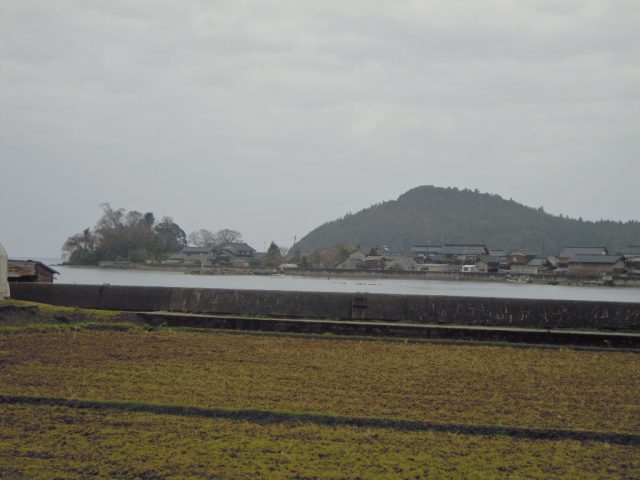 (写真左に見える山に神社があります。右は黒崎地区に来たときのもの)