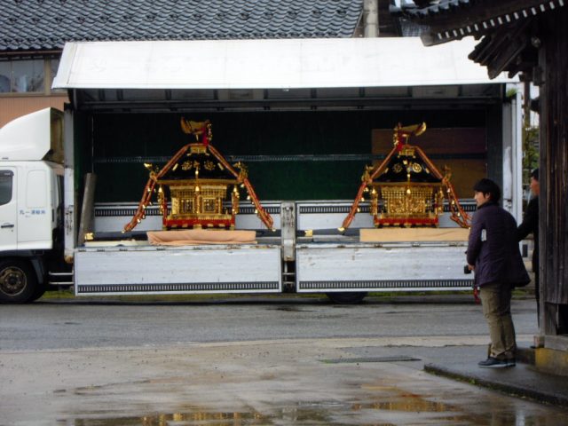 写真はお神輿(みこし)を巡回しているときのものです。