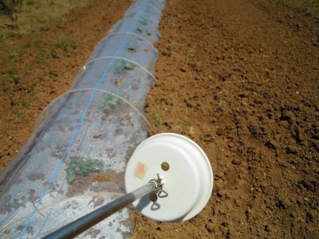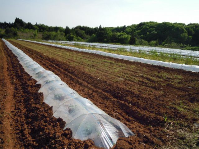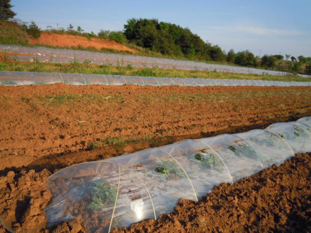 午後からスイカ畑のビニールに穴を開けてました。