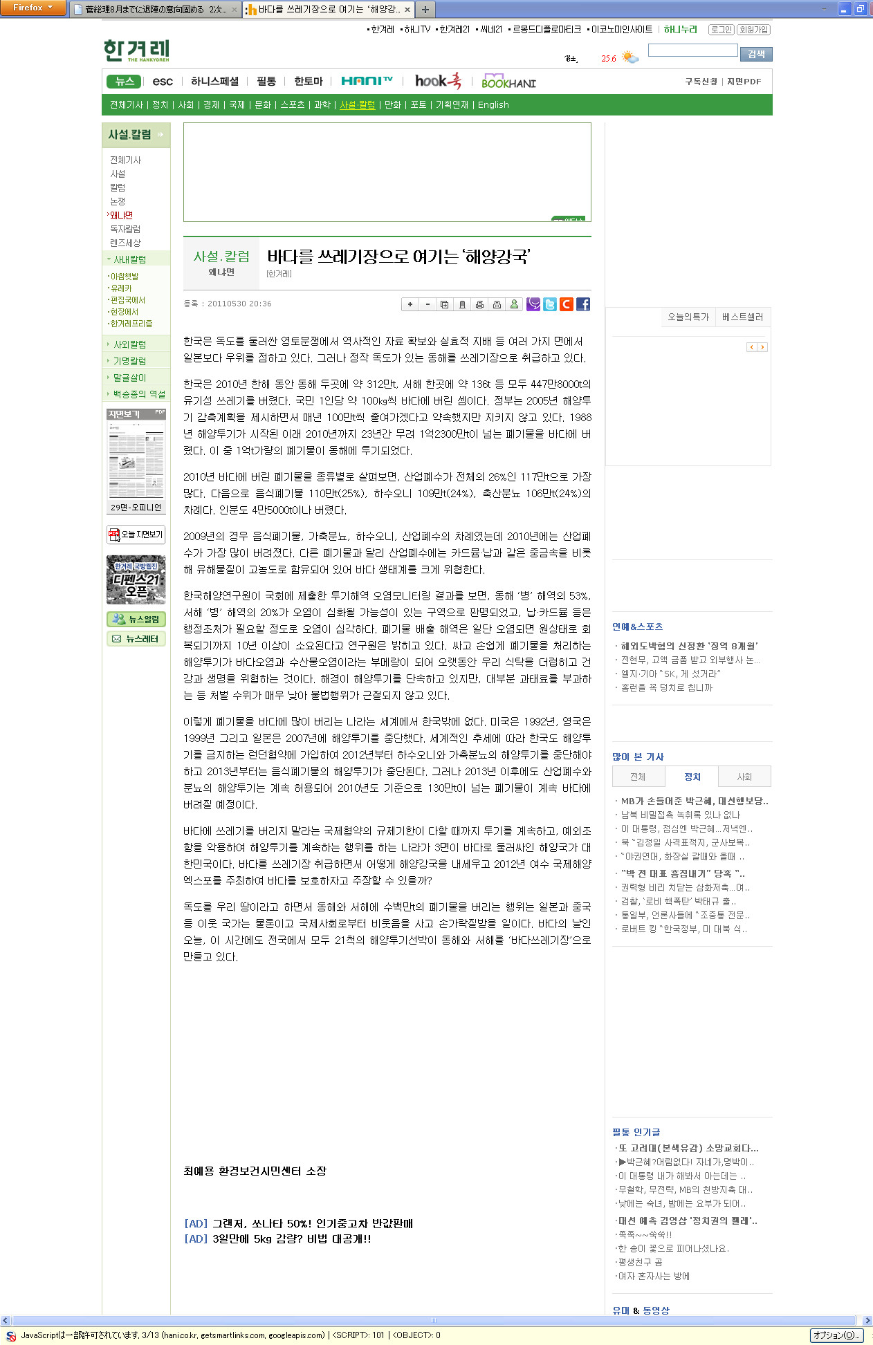 ソース:ハンギョレ新聞(韓国語) 海をごみ場でここは‘海洋強国’[ハンギョレ]