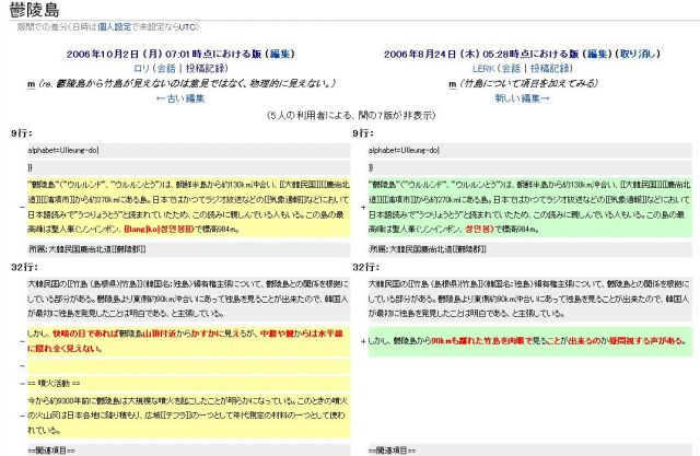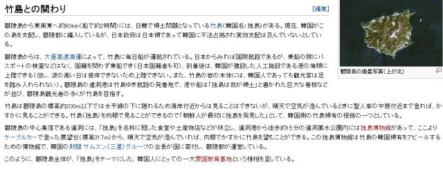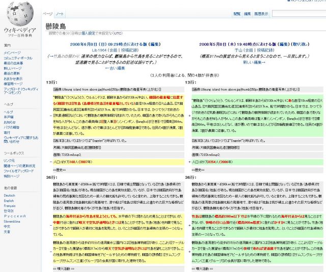 なんですが、鬱陵島(うつりょうとう)のウィキペディアの編集履歴を見ると