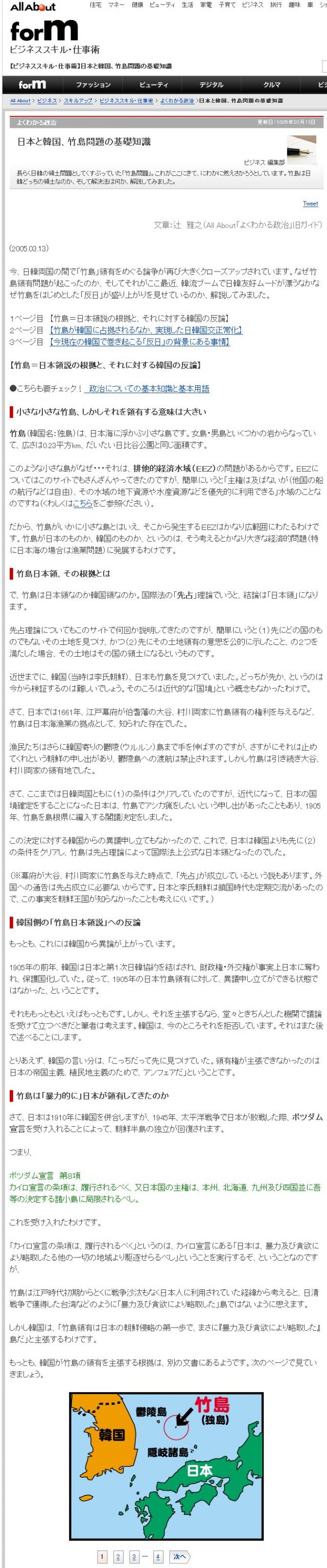(下の画像 All About : 2005-03-13 竹島問題の基礎知識)