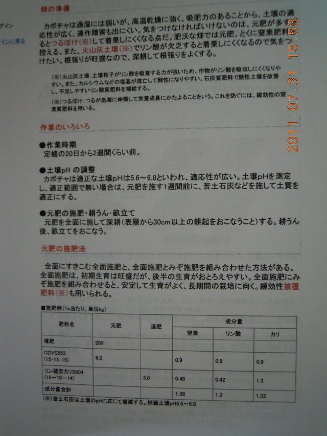 次が農業e-ラーニングで勉強した「かぼちゃの肥料の配合」は