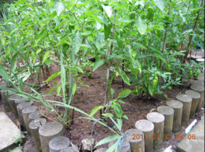 7月21日 昨日の続きでかぼちゃの種を植えた土の上に腐葉土をかぶせてました。