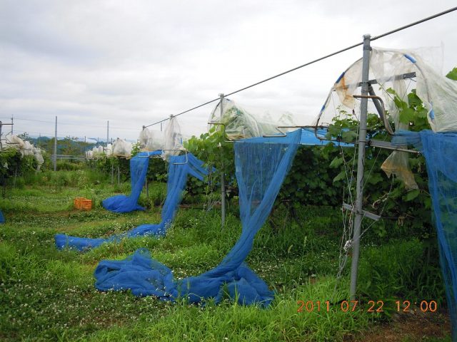 7月22日 午前中は昨日の続き。そのあとぶどう園で鳥よけのネットを張ってました。
