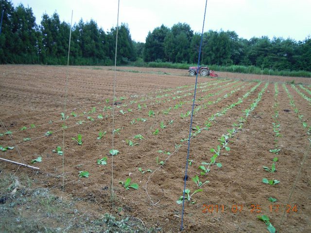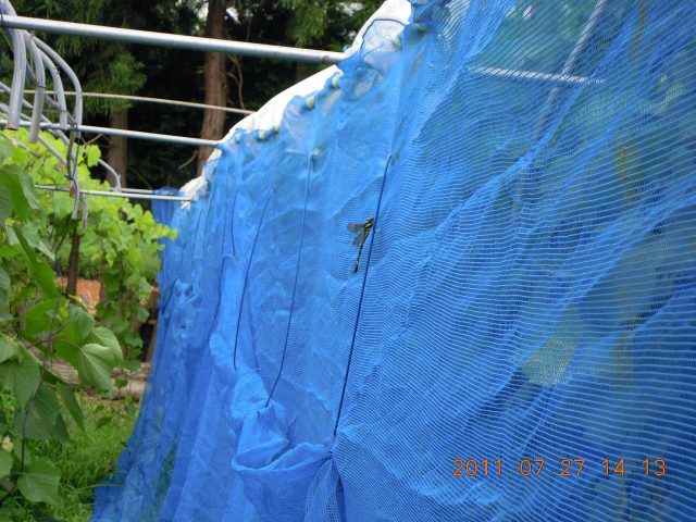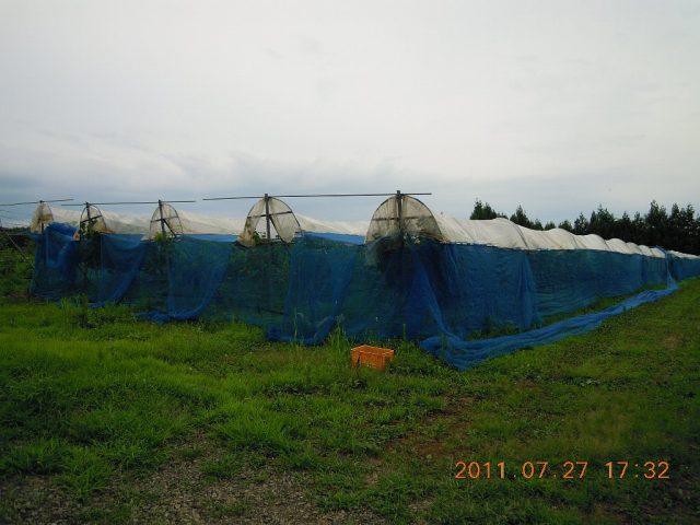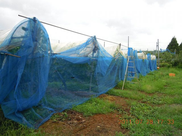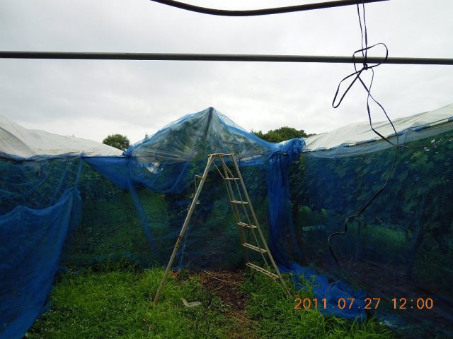 7月25日 ぶどう園に鳥よけネットを張る。