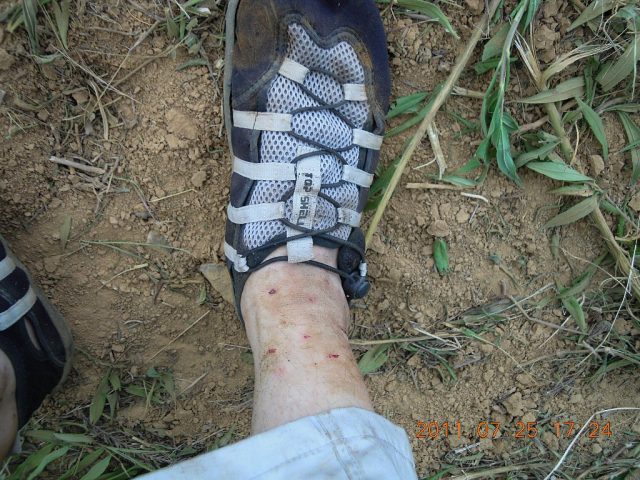そのときに靴下をはかずに作業をしていたので「やぶ蚊」や「うろり」に刺されました。