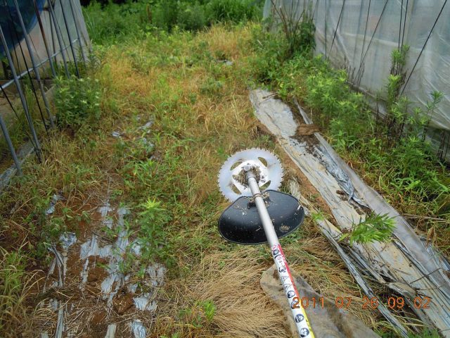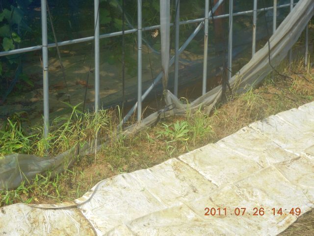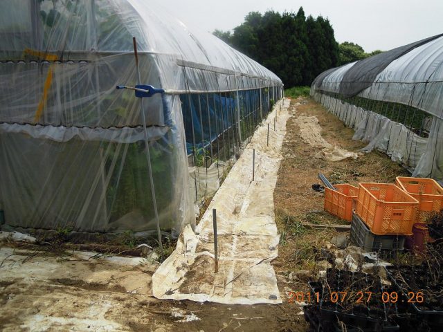 7月26日 ビニールハウスの周りの草刈りをしてシートを敷いていました。