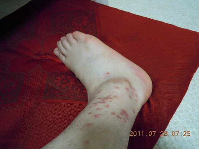 25日に刺された足首の腫れがひどくなりました。
