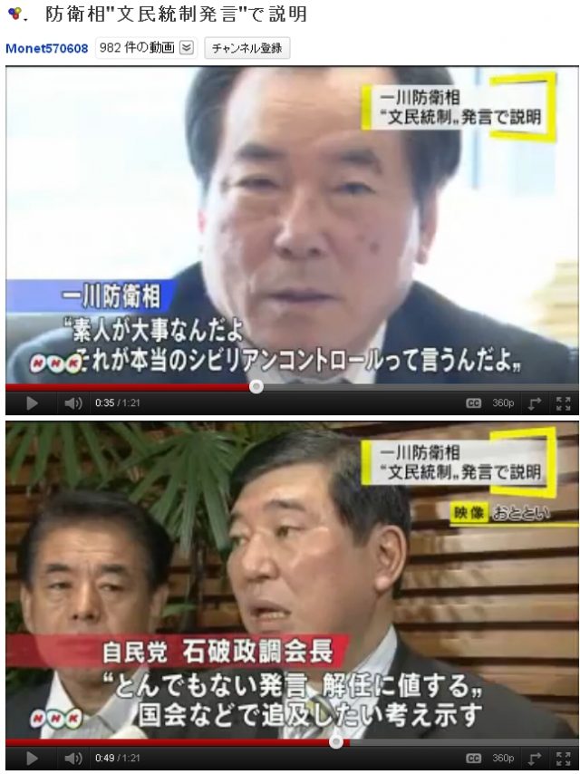 一川防衛相”文民統制発言”で説明 2011-09-05