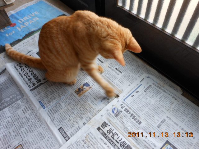 獲物を獲ってくるたびにほめていたら赤とんぼを捕まえてきました2011-11-14