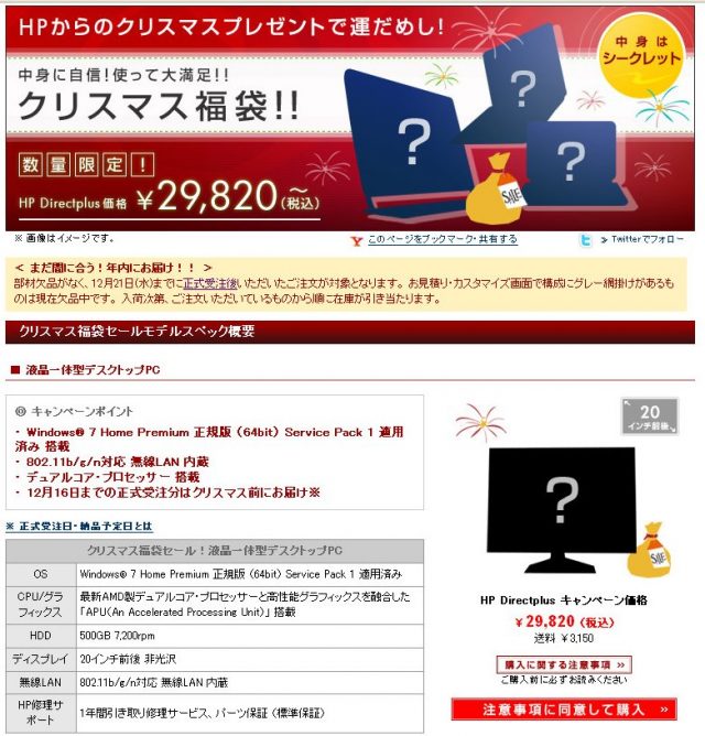 それでPCを思い切って買い替えることにしました。上を見たらきりがないのでこの辺で妥協しました。HPのクリスマスセール品で29800円。これでも今使っているPCよりもカタログ上の性能ははるかに上です。