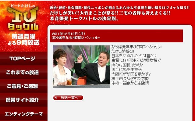 TVタックルは「政治バラエティー番組」だから演出があっても不思議ではないと思います2011-12-20