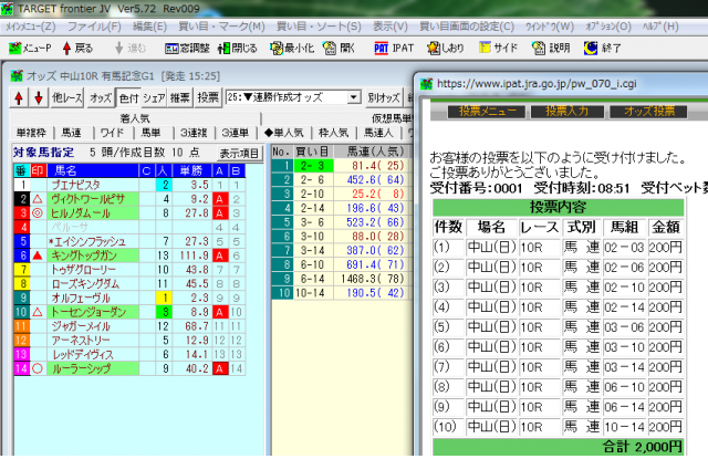 私が選んだ5頭が3着以内にこなくてほっとしました。むしろ気分的にスッキリしました。