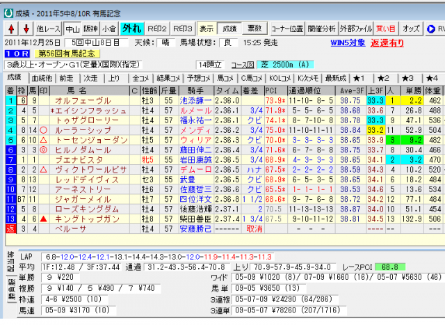 (↓ttp://uma-jin.net/tip/race/201106050810.htmlプロの勝負馬券 有馬記念)
