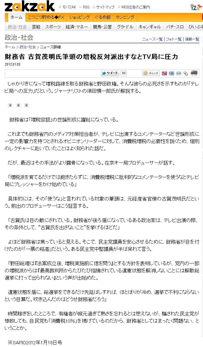 財務省 古賀茂明氏筆頭の増税反対派出すなとTV局に圧力