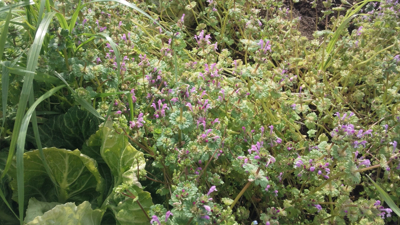 写真の雑草は「ホトケノザ」です。