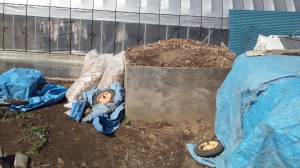 午前は昨日草刈りをしたガラスハウスに堆肥を撒いてから