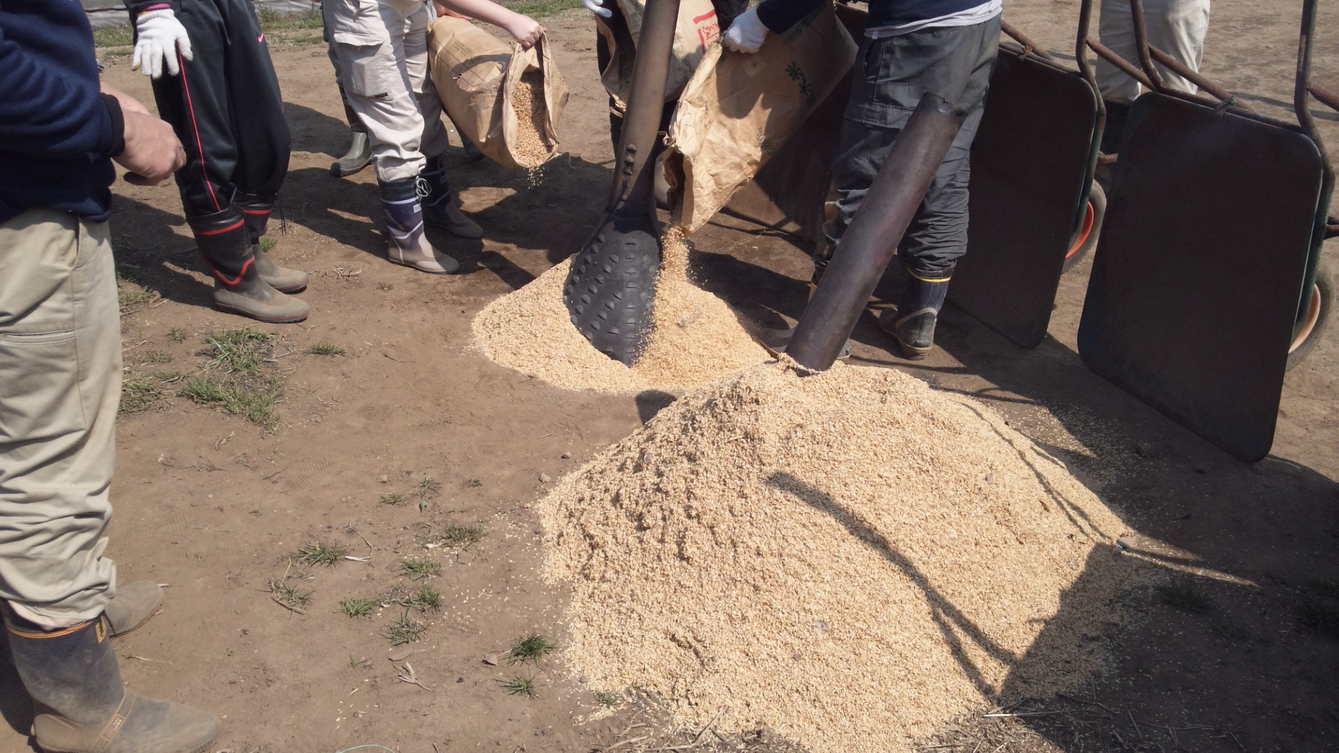 風が強かったのですが、2台で籾殻8袋(1台あたり4袋)使いました。