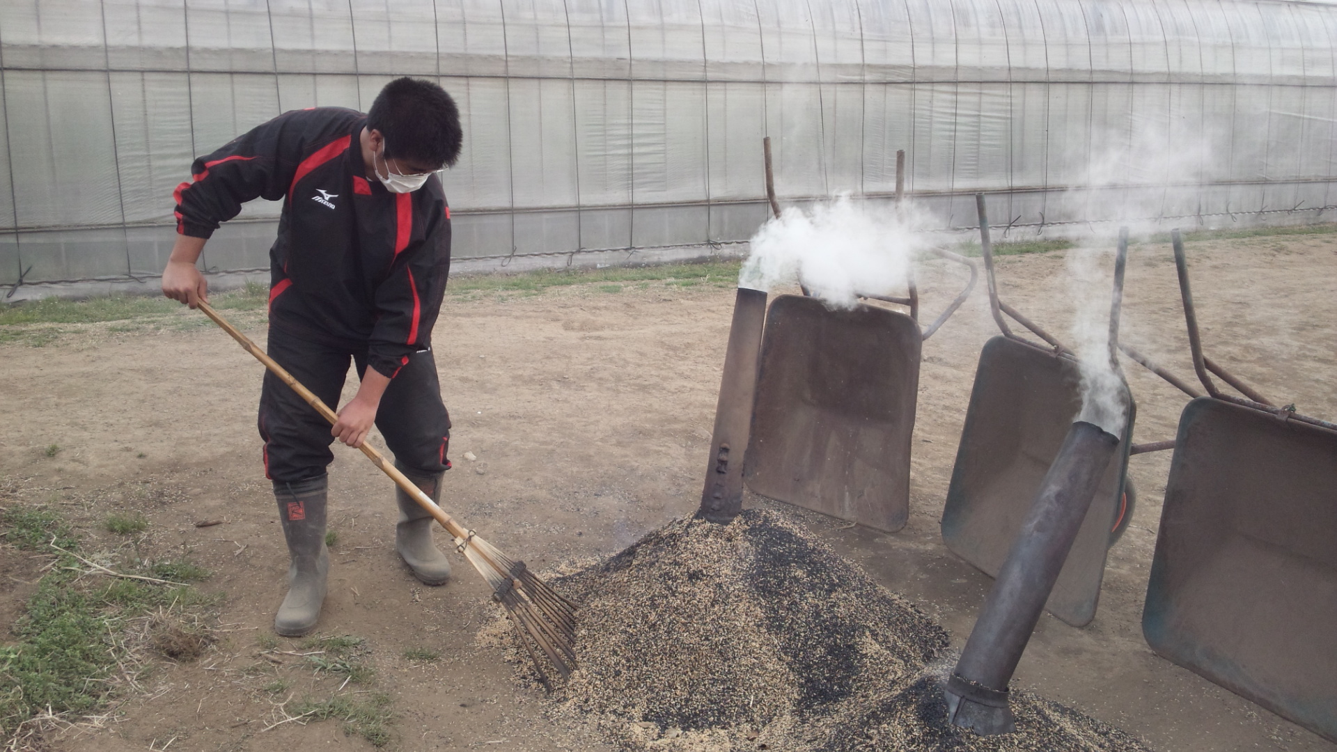 午後は籾殻くん炭づくり 2012-04-09