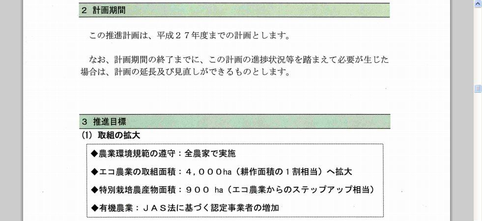 そして平成27年度までには耕作面積の1割をエコ農業の取り組み面積にする