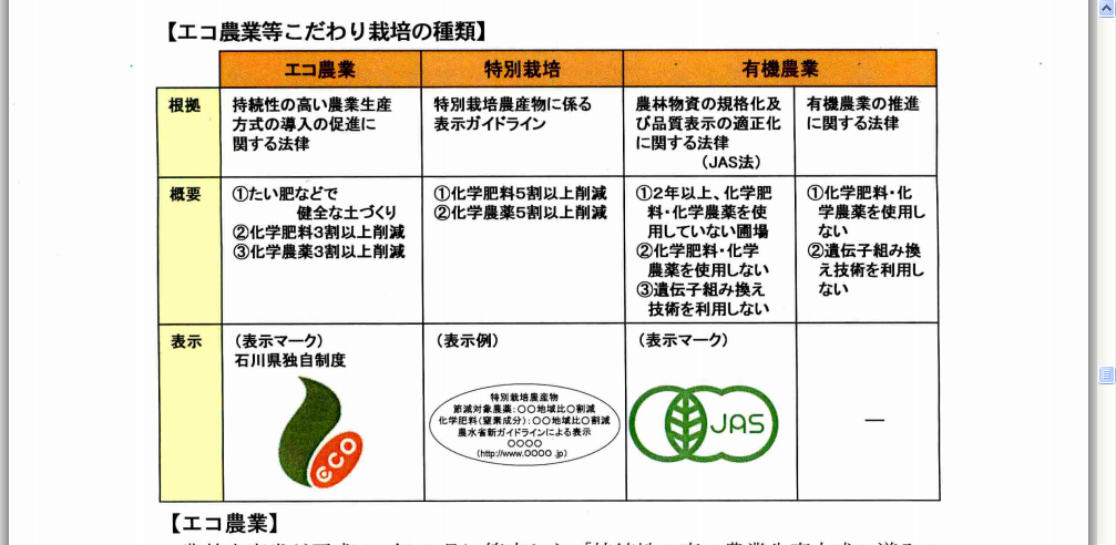 それで石川県としては有機農業よりも