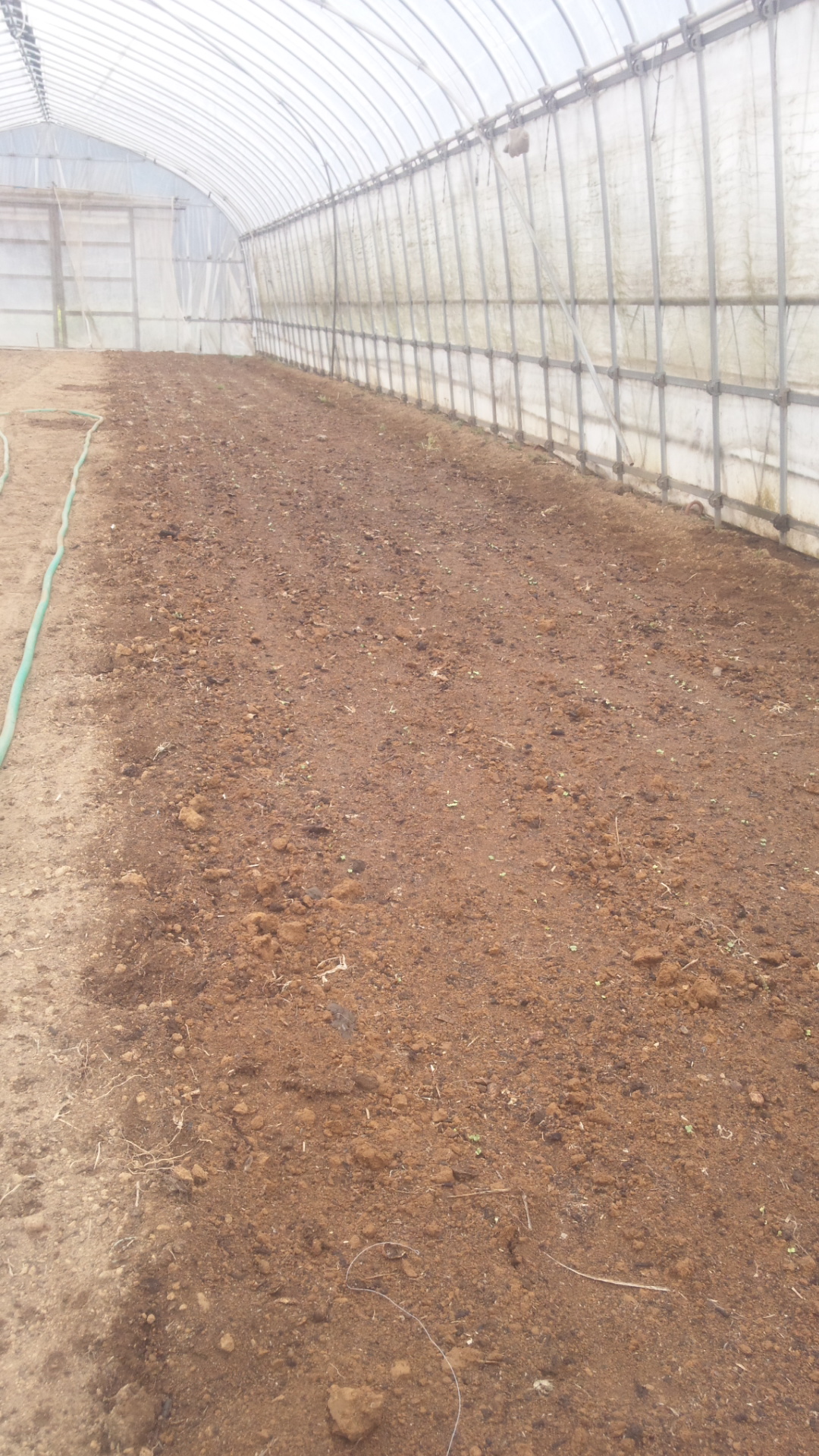 午後は第5圃場(ビニールハウス)で小松菜の種まきです。