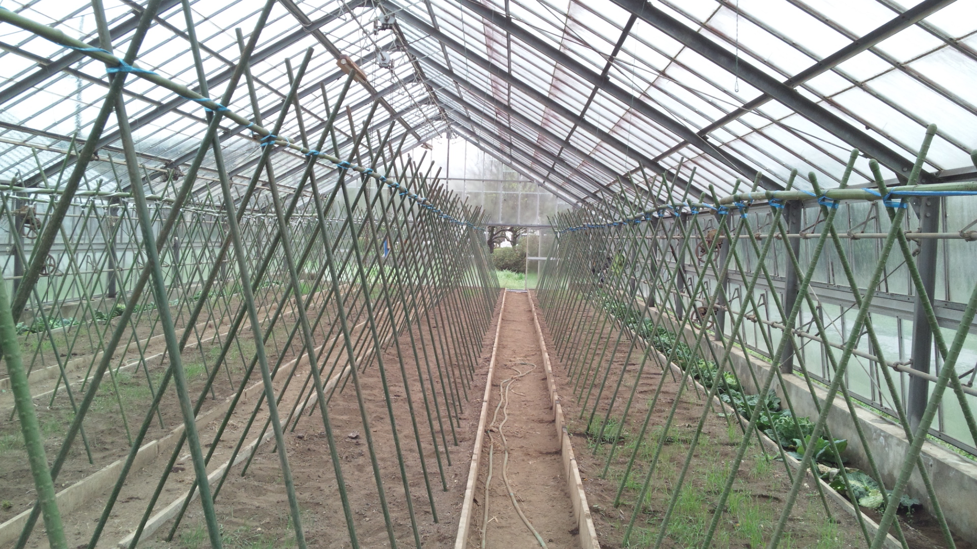 先日ガラスハウスに合掌式で立てた支柱に