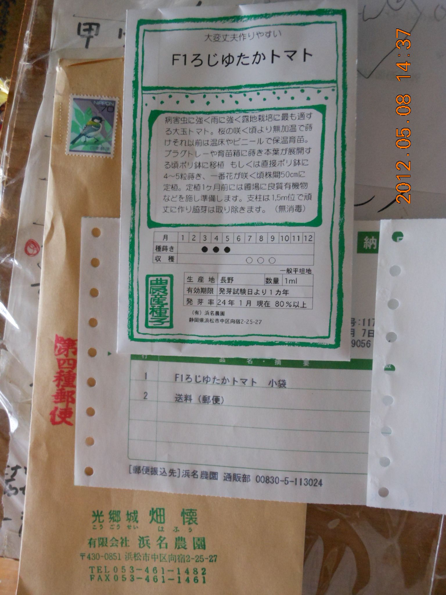 トマト(ろじゆたか)の種を注文しました。
