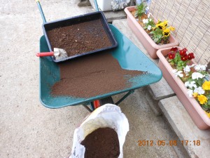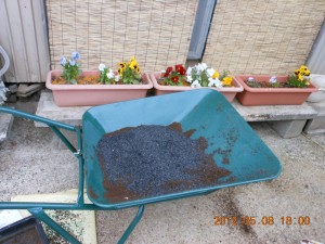 裏山の土を集めてフルイでゴミを取って籾殻くん炭を混ぜれば