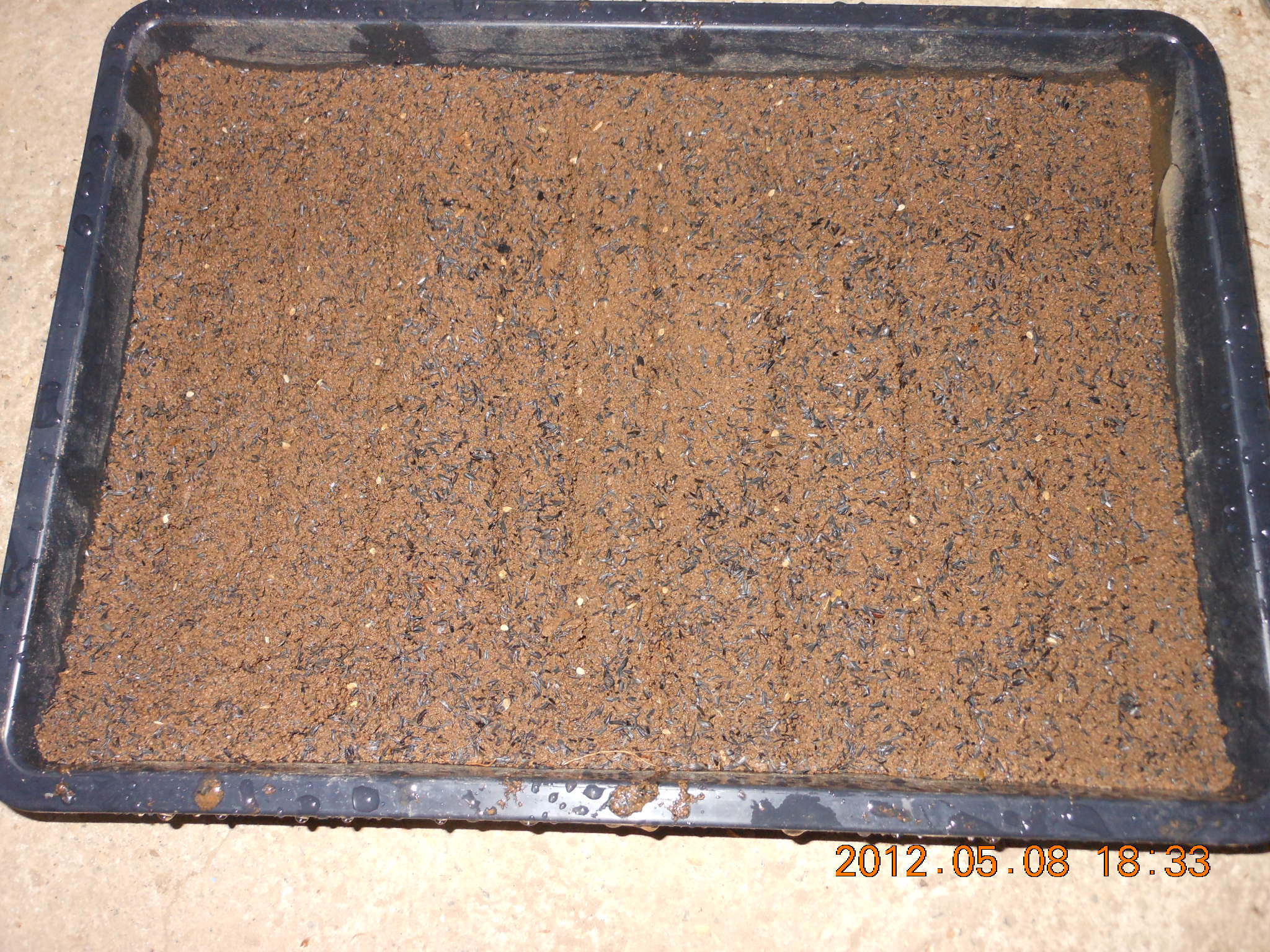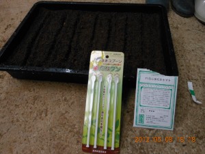 トレイに入れて筋蒔きしました。