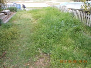 それで草の間に米ぬかを入れた後は水はかけないでシートで覆いました。