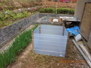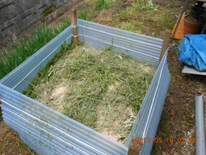 [作った堆肥枠は一辺が90センチプラスたる木2本分です]