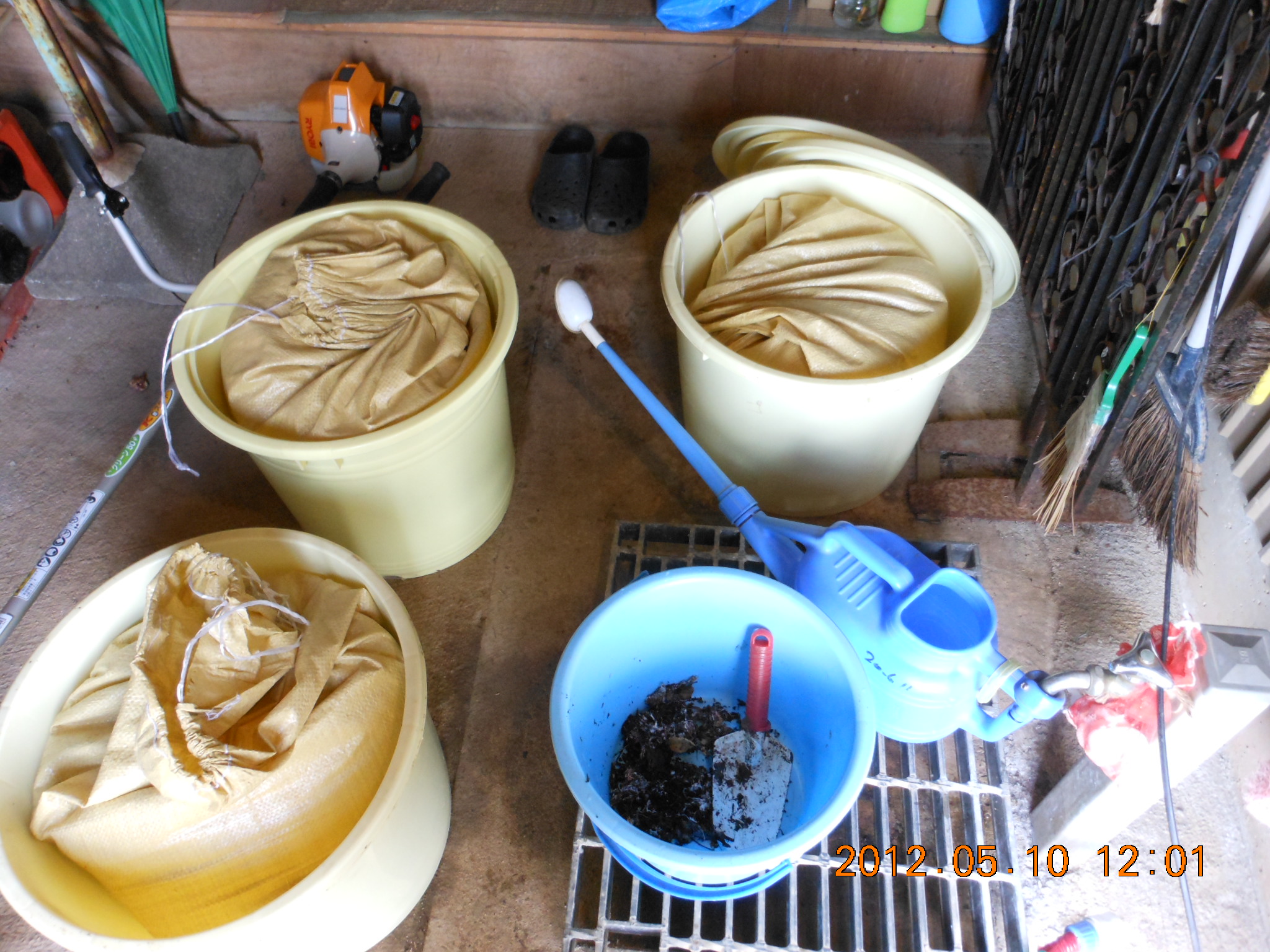 米ぬかに水とはんぺんだけのぼかし肥料作り 2012-05-10