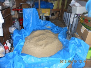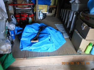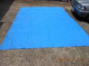 それから下に引くブルーシートを外で広げて掃除。