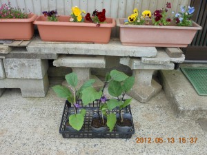 ナスの苗は寒さにやられて全然成長しませんでした。