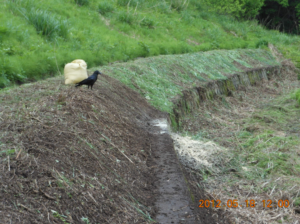 昼頃、雷雨になったので午後は石垣の上の「のり面」の草刈り。
