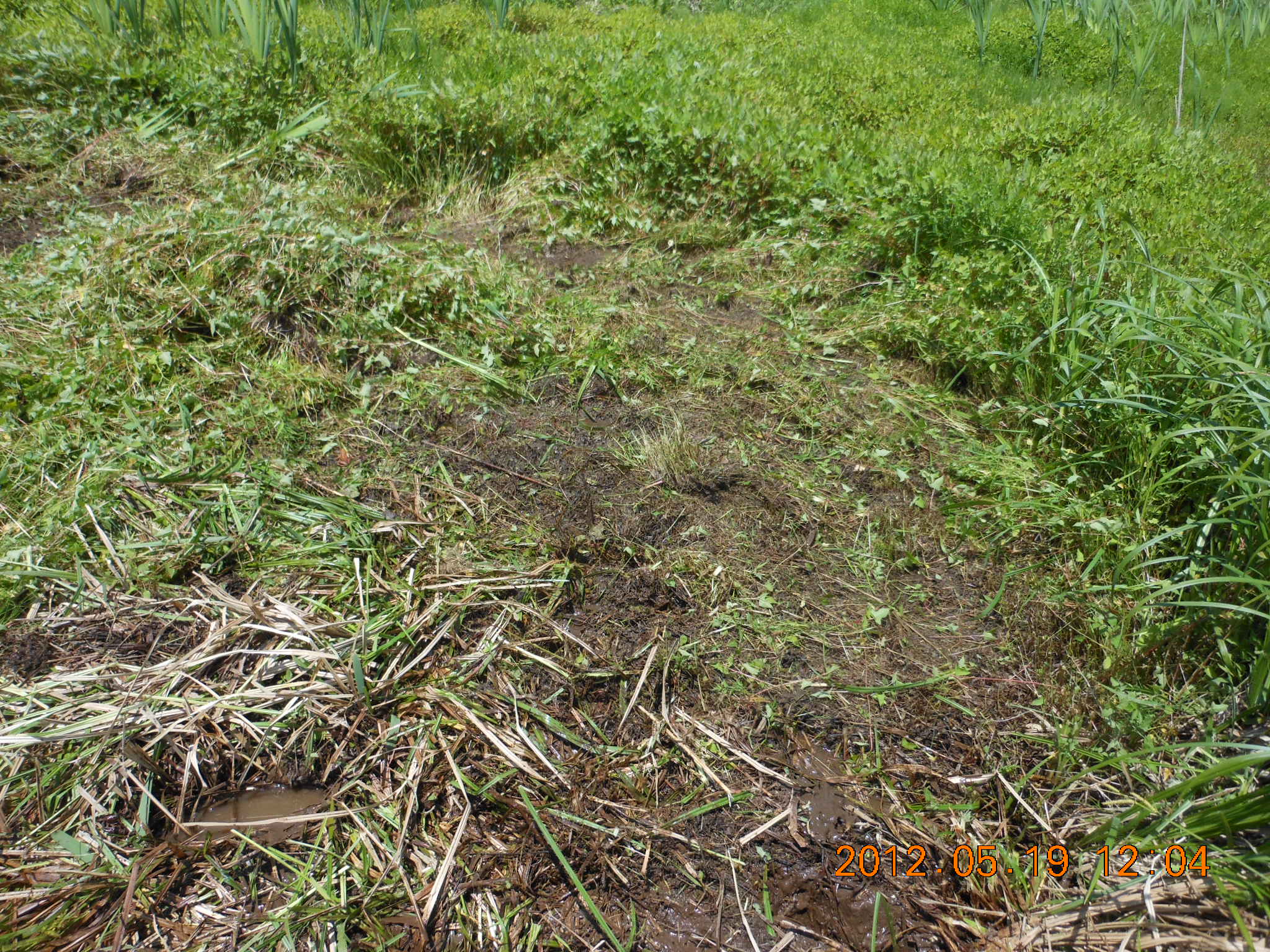 側溝が詰まっていて水があふれている場所が湿地帯になってます。