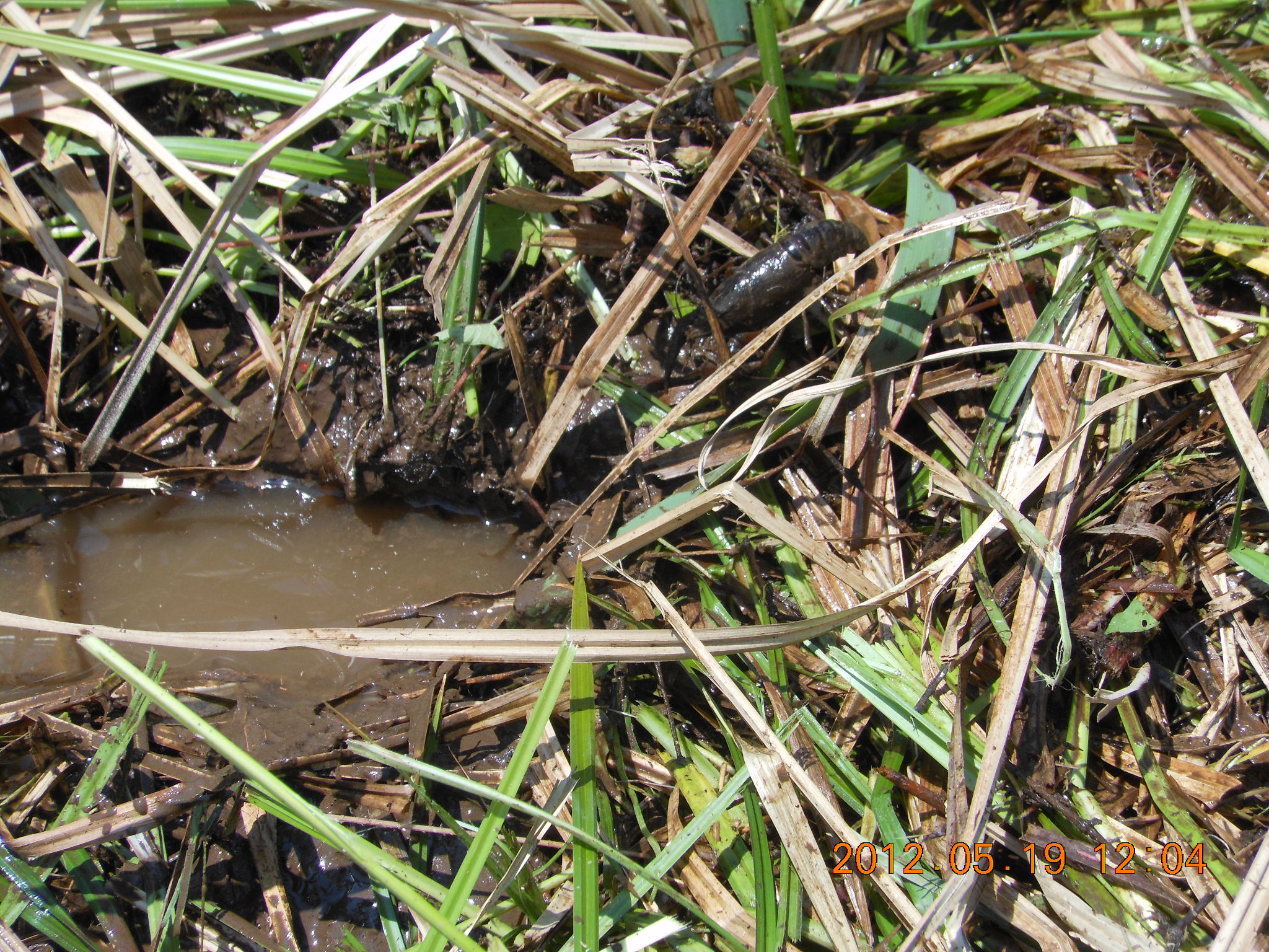 底の方に堆積していた枯れ草は腐敗臭がしないので