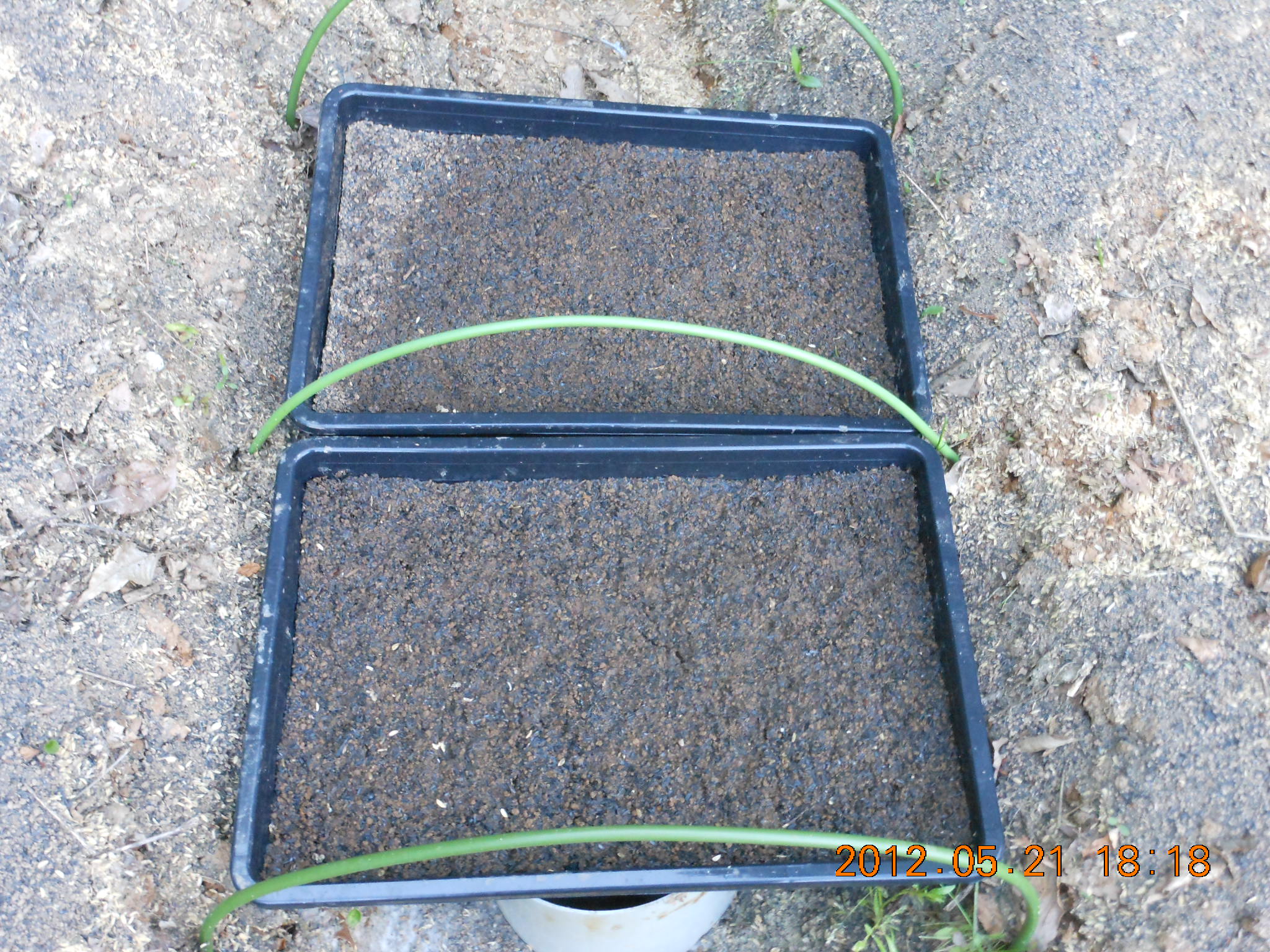 ハウスを使わずに外で育苗しました。