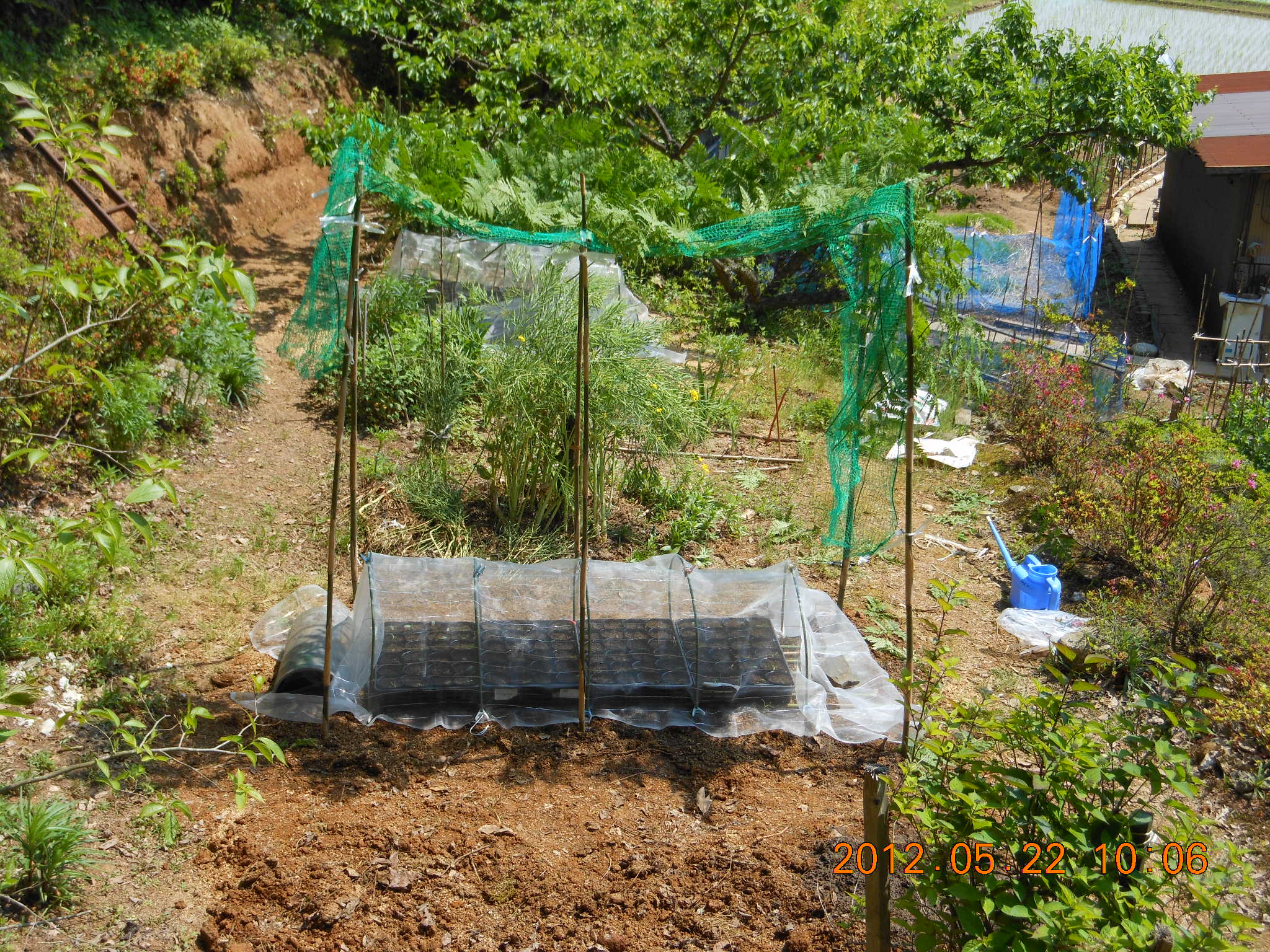 高畝を崩して代わりに日除けを作りました。