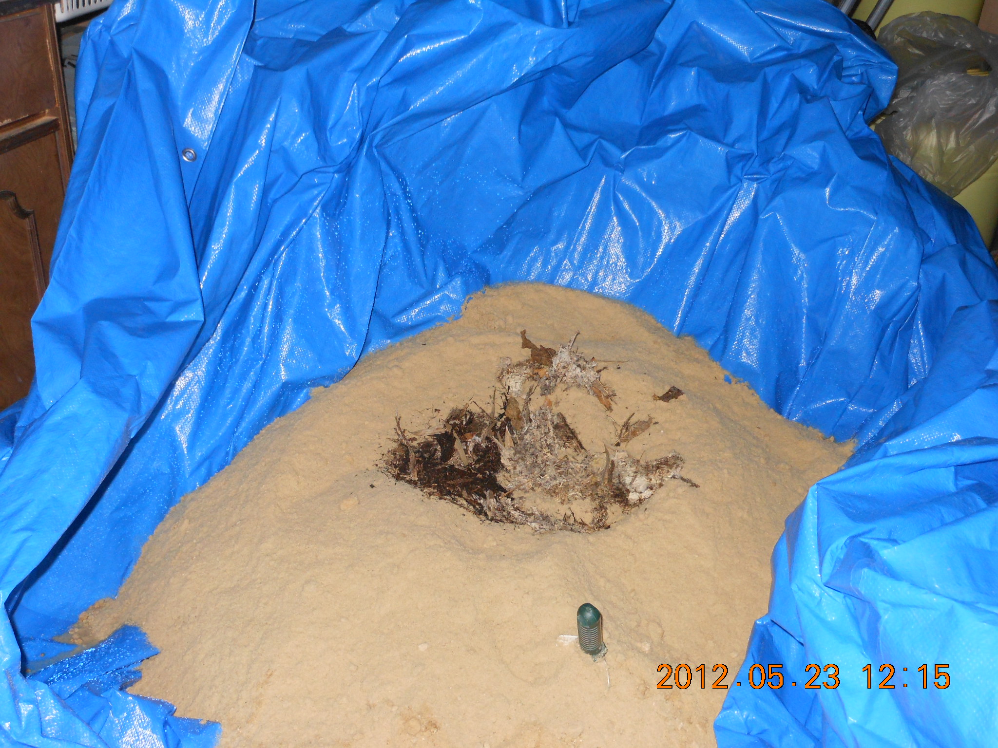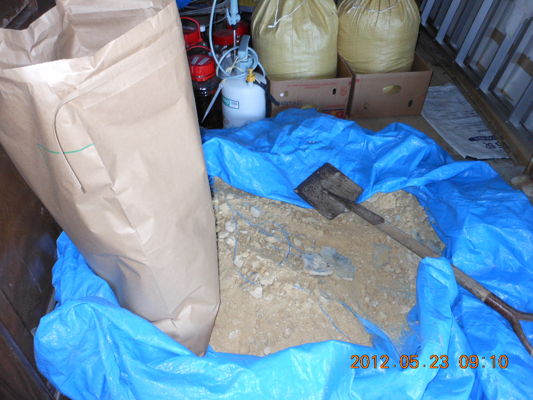 それで肥料袋を下に敷いたら今度はブルーシートの中で