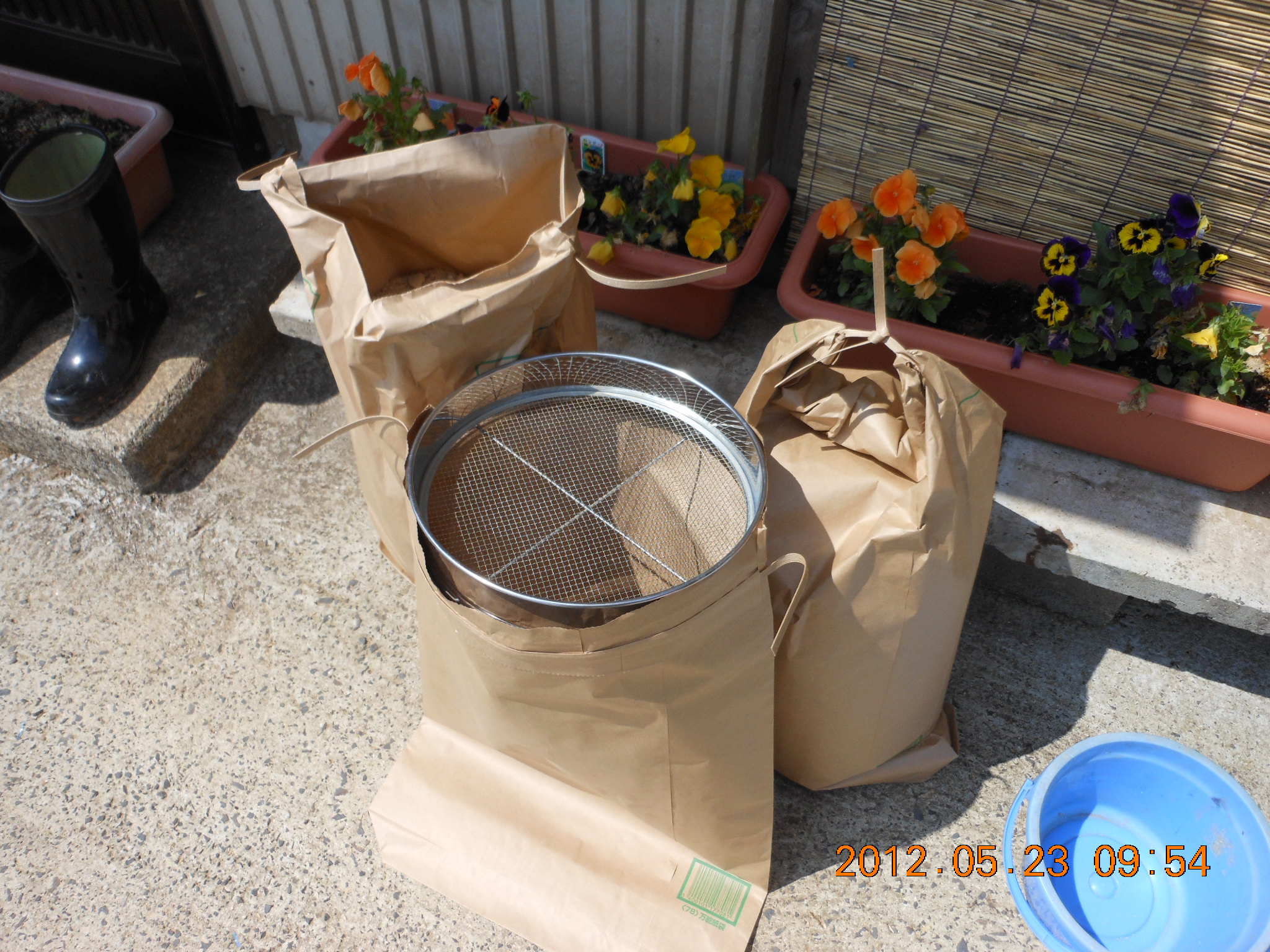 米ぬかに水とはんぺんだけのぼかし肥料作り2回目 2012-05-23