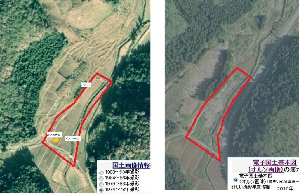 右が2010年に撮影された現在の圃場です。