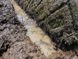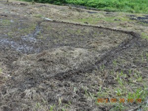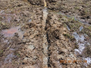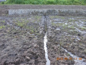 昨日作った溝は下の田んぼに水が流れていくようにしてあった場所まで掘りました。