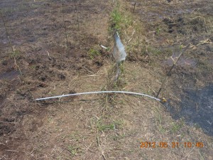 今日はそこを中心にして溝切り用に左右150センチ測って支柱を立てました。